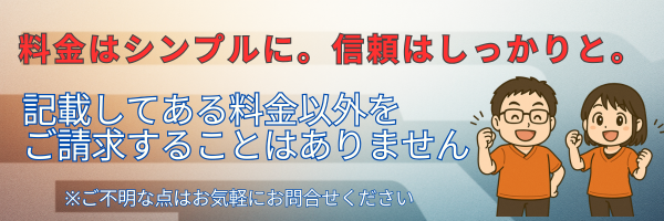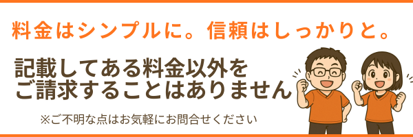また、「○○をしたら追加で○○円」というような、後から加算される料金設定も一切ありません。